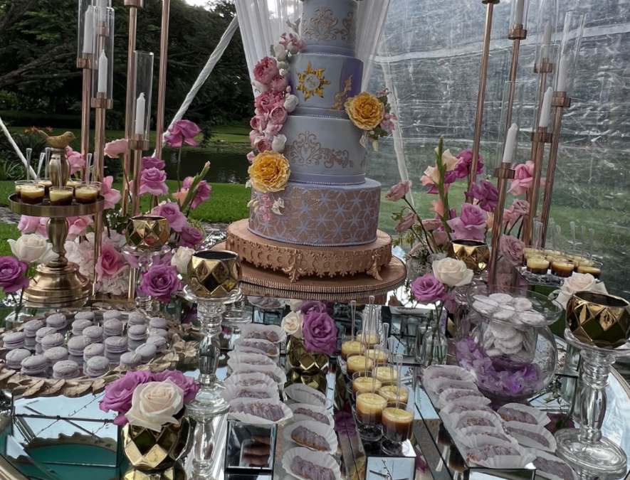 Think flowers are just for your tables? Think again. Suspending lush arrangements a few feet above your guests’ dinner plates is a fun way to create a more intimate space. (This tip is especially handy if you’re not so fond of your venue’s carpeting—just keep people looking up!)